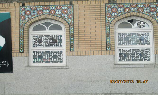 پنجره های گره سازی شده ازچهارپهلوی ۱۲ میلیمتری نصب شده درصحن امام خمینی(ره)حرم حضرت معصومه(س)قم