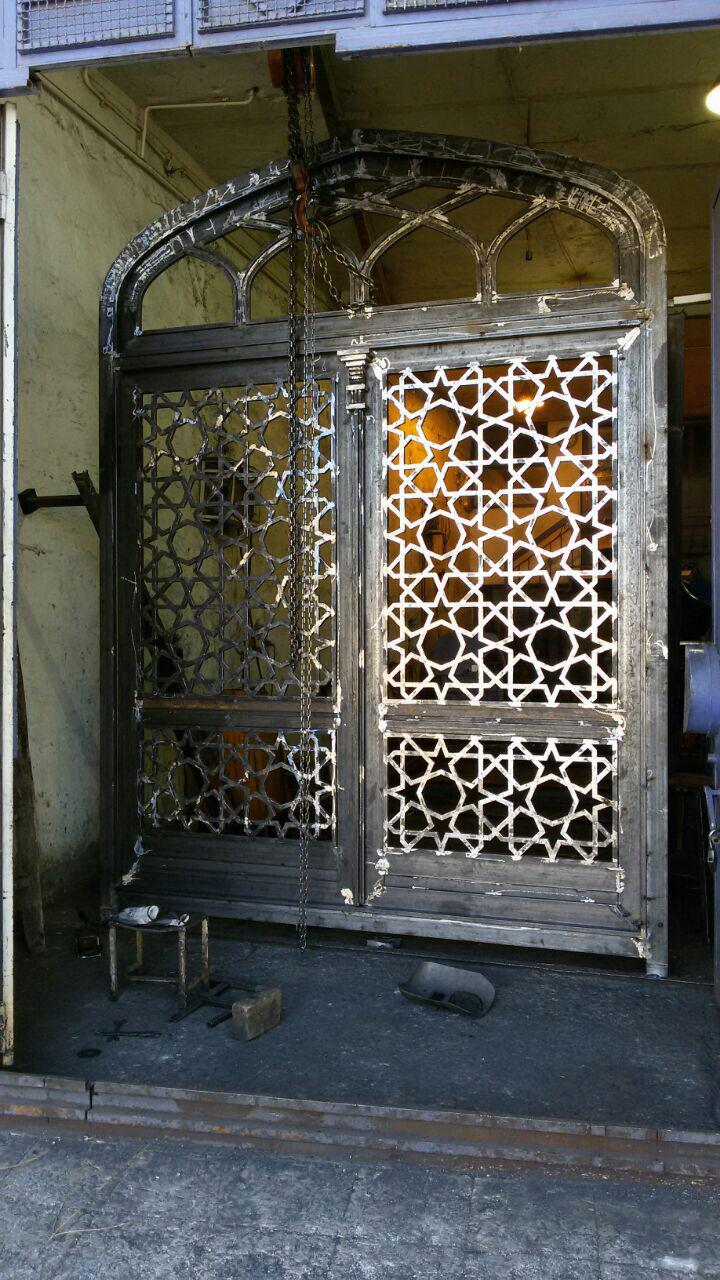 درب سه لنگه بازشو گره سازی شده به ارتفاع ۴ متروعرض۴ متربه سفارش مسجدسلمان شهر